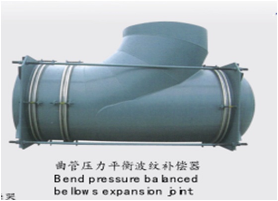 該類(lèi)補償器是由兩個(gè)工作波紋管,一個(gè)平衡波紋管、端接管、中間接管、彎頭、封頭和端板及平衡推桿等裝置組成,其中平衡推桿在端板連接處帶有球面和錐面墊圈構成滑動(dòng)體,動(dòng)全在補償器進(jìn)行橫向補償時(shí)自行調整。壓力平衡型補償器可以對彎曲管段產(chǎn)生的橫向位移通過(guò)工作波紋管補償吸收,工作波紋管同時(shí)補償吸收直管段內的軸向位移并通過(guò)平衡波紋和被平衡,該補償器一般用于“T”型和“空間門(mén)”型管道的位移補償,軸向剛度值為工作波紋管與平衡波紋管之和,軸向剛度較大,因此彈反力較大,該型補償器能平衡介質(zhì)壓力推力。